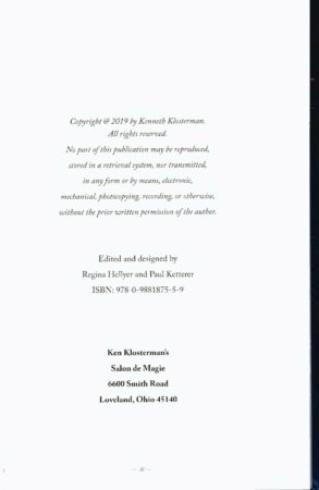 Ken privately published this book for his circle of friends and sent it to them as a memento of his appreciation for their friendship. This was not offered for sale and copies will likely only become available as the recipients of this book pass it on at their death. The book also contains a book test devised and described by Richard Osterlind.