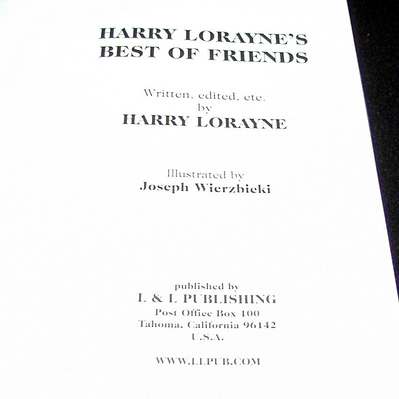 (c. 1982,2001) (Submit Review) (Submit Update)Details: Harry Lorayne’s Best of Friends is a great resource for learning magic from dozens of master magicians. There are sections that describe the magic of Larry Jennings, Bro. John Hamman, Ken Krenzel, Sid R. Spocane II, and Herb Zarrow. Jim Swain’s “Vanishing Aces” is an exceptionally visual ace trick, and Jack Birnman’s “False Identity” will satisfy even the most well read card men.