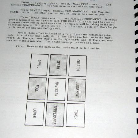 (c. 1974) (Submit Review) (Submit Update)Details: Now you can cash in on the popularity of the occult. Here is a book that shows you how to really impress your audiences and entertain them with fascinating mysteries of the ancient Tarot. Not just card tricks but mysterious sketches, complete with patter, that will establish you as a Mind Reader, Fortune Teller and Magician. When you bring out a deck of Tarot cards, you attract everyone’s interest and attention.
