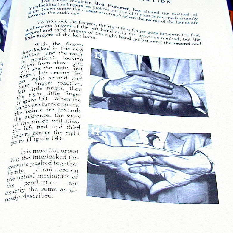57 Production of Cards with Fingers Interlocked: Hands are interlocked and both sides shown, yet cards are produced