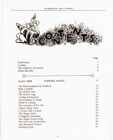 (c. 1970,1976) (Submit Review) (Submit Update)Details: Introducing Bill’s Magic is a fantastic book, loaded with great magic for parlor and stage. The material is in the category of Robert Harbin and Eric Lewis’s stand up material. All effects in the book are geared for a family audience. Illustrated by Ali Bongo and it that includes Bill’s famous Sporting Act, his Close-Up and his Living Marionettes.