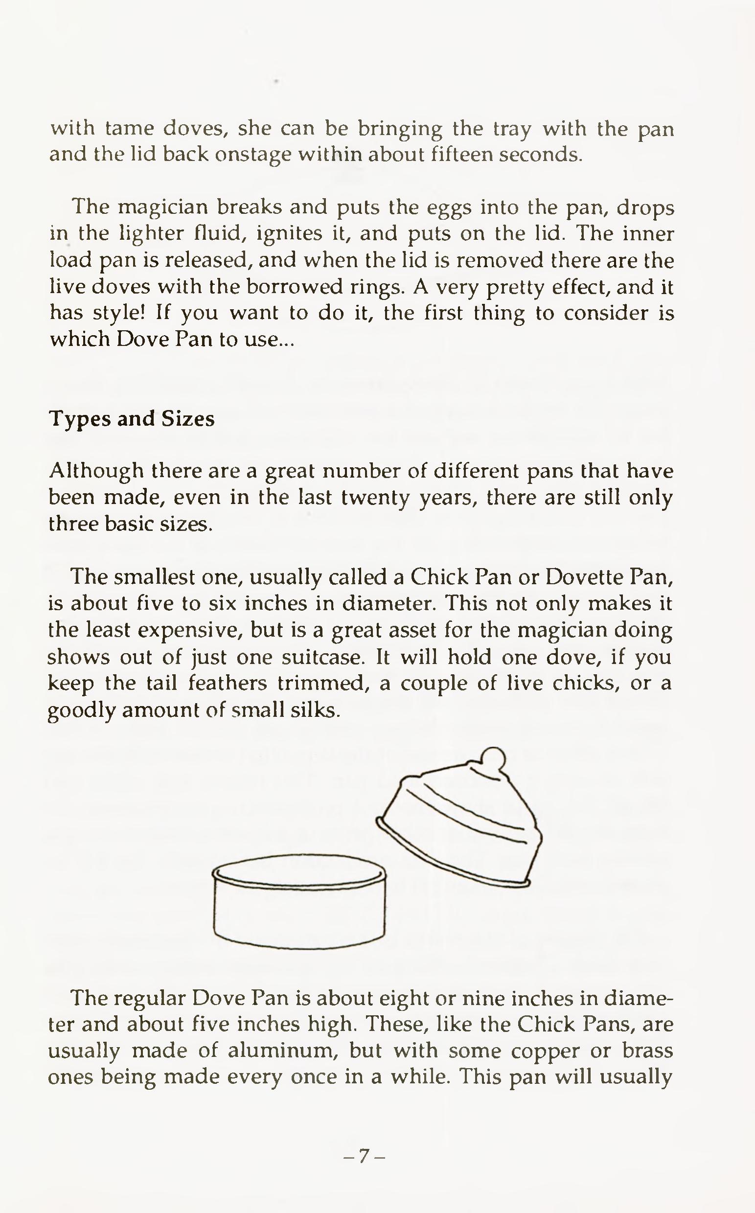 (c. 1991) (Submit Review) (Submit Update)Details: This is the Seventeenth Volume in the Library of Magic on the Dove Pan by Magic City. Within its pages you will find knowledge on how to perform quality routines and performances using the Dove Pan.