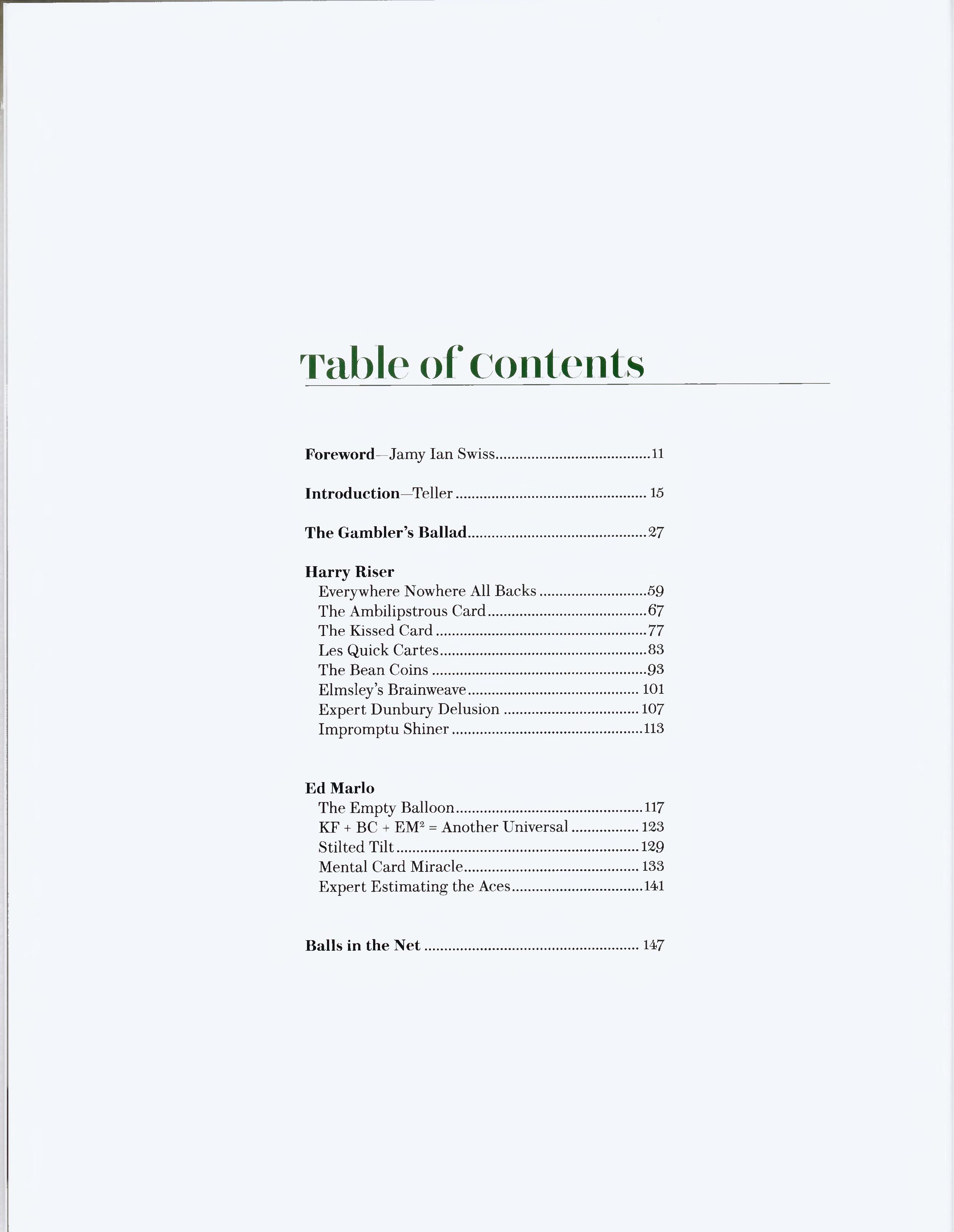 - The Gambler’s Ballad Harry Riser | Everywhere Nowhere All Backs, The Ambilipstrous Card, The Kissed Card, Les Quick Cartes, The Bean Coins, Elmsley’s Brainweave, Expert Dunbury Delusion, Impromptu Shiner