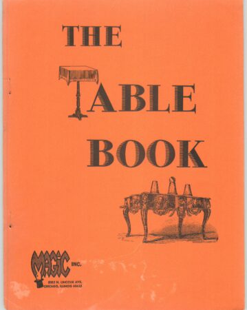 Contains: Construction Notes, Compact Nite Club Table, Deep Shelf Nite Club Table, Cut Out Night Club Table, Travel Table, Solid Panel Side Stand, Utility Roll On Table, Easy to Make Roll On, Card Motif Novelty Tables, Novelty Animal Tables, Utility Clown Prop Table, Drum Stands, Novelty Side Stands, Tier Table, Utility Turn Table, Harbin’s Packaway Table, Gravity Defying Side Tables, Utility Stand, Gambling Expose Case, Close Up Platform, Card Table Platform, Box Type Tables, Elevator Tables, Microphone Stand Props, and a chapter of add-ons for your table: “Black Art Wells, Covers, Etc.”