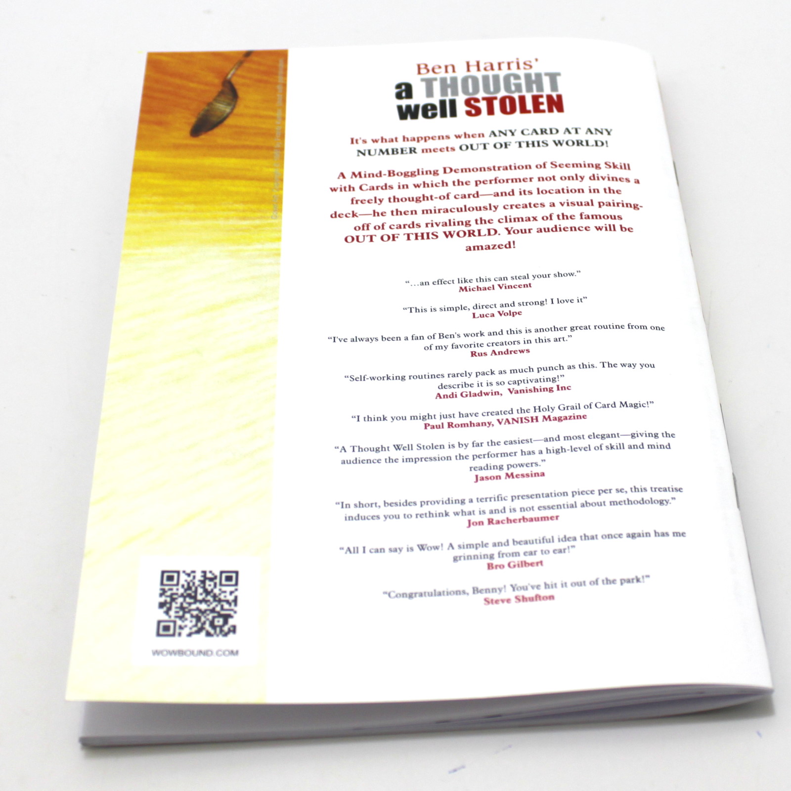 A Thought Well Stolen requires the use of no gaffs or gimmicks of any kind, just regular playing cards. The book runs 40 pages of detailed text covering the simple and beautiful series of almost self-working procedures that bring about the amazing results.