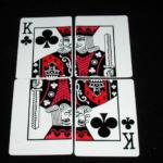 The second effect (by Paul Richards) has an effect similar to Phil Goldstein’s “B’Wave.” The magician holds a packet of four cards and tells the spectators that they are the four kings. A spectator now decides on one of the kings. When the four cards are turned over and dealt face-up on the table, they form a jumbo image of the designated king.