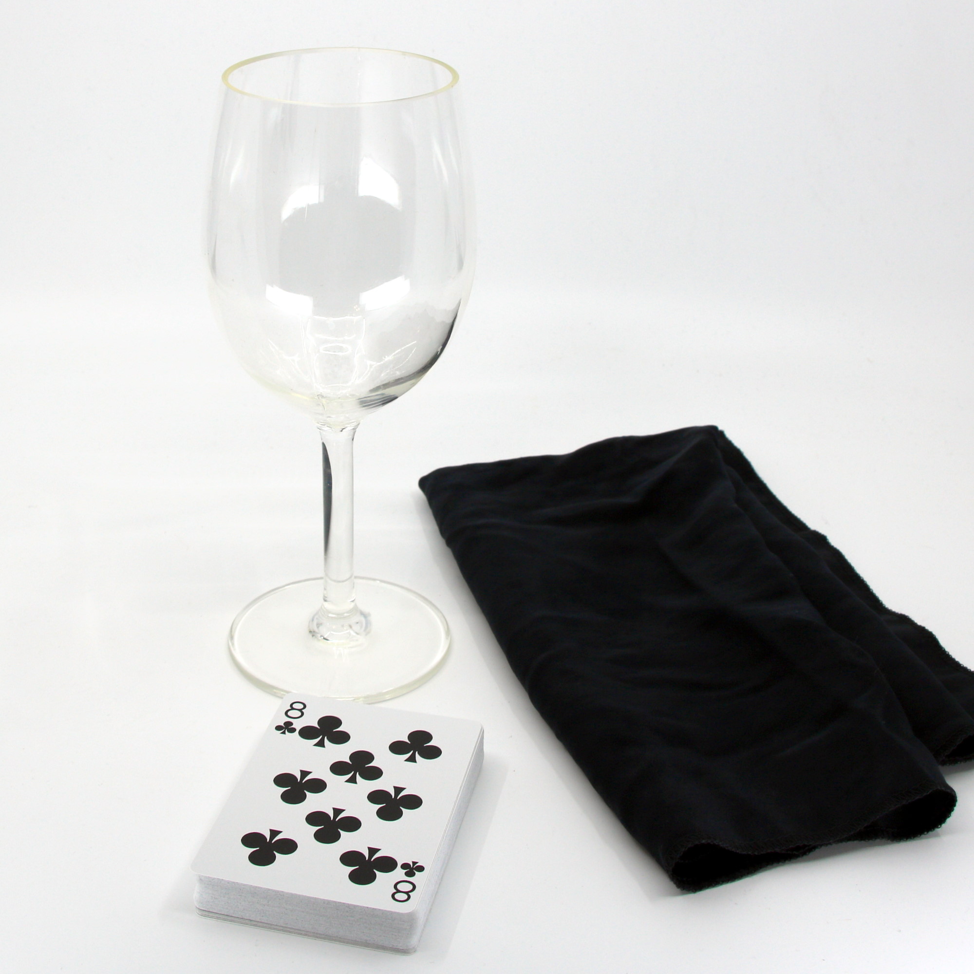 This is what Martin Lewis says about the change: “My father, Eric Lewis, created the Comedy Come-Back Card and designed an acrylic houlette for use with it, wine glasses being too breakable. If acrylic wine glasses existed in his day I’m sure he would have used one. A wine glass and napkin are far more innocuous looking and lend elegance to the effect.”