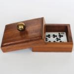 Effect: A small, elegant black walnut box with brass knob is displayed on your desk or coffee table. The original contents (playing cards, business cards, cigarettes, coins, paper clips, postage stamps, etc.) are removed and the empty box displayed to your audience.