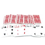 Spectator pushes any card out of the red deck and this is placed face down on the blue card. Then magician picks up cards and shows that he has matched the choices made by the spectator. Then he flips red deck face up, spreads them out … all the faces have vanished!