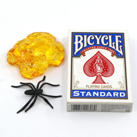 Effect: The performer introduces a piece of Golden “Fossilized Resin” AMBER, it is seen to contain within its clear hardened resin center an embedded spider, it is freely passed around for all to view and handle, explaining the fossilzation process takes up to 10 million years! The performer upon retaking hold of the AMBER proceeds to demonstrate how the spider found its way to being entrapped within the AMBER, he does this by momentarily encircling his fingers around the AMBER, at the some time he requests one of the spectators to extend out one of their hands palm up, the performer then visibly holds the AMBER with its entombed spider just above the spectator’s out stretched palm and request all to focus on the entrapped spider, as they do this they suddenly begin to see the spider ever so slightly move within the AMBER, the movement continues when all of a sudden the spider leaps FREE onto the spectators outstretched palm, leaving the solid piece of “Fossilized Resin” AMBER now visibly empty of its once entrapped and entombed spider.