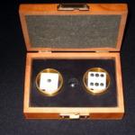 Effect: This one will fool you even when you know how it’s done! Bring out a small wooden box. Open the box to show two large white dice, two brass rings and a small stainless steel ball. All the items are set into cutouts in the foam lining of the box. Remove everything from the box, show it empty and set it aside.