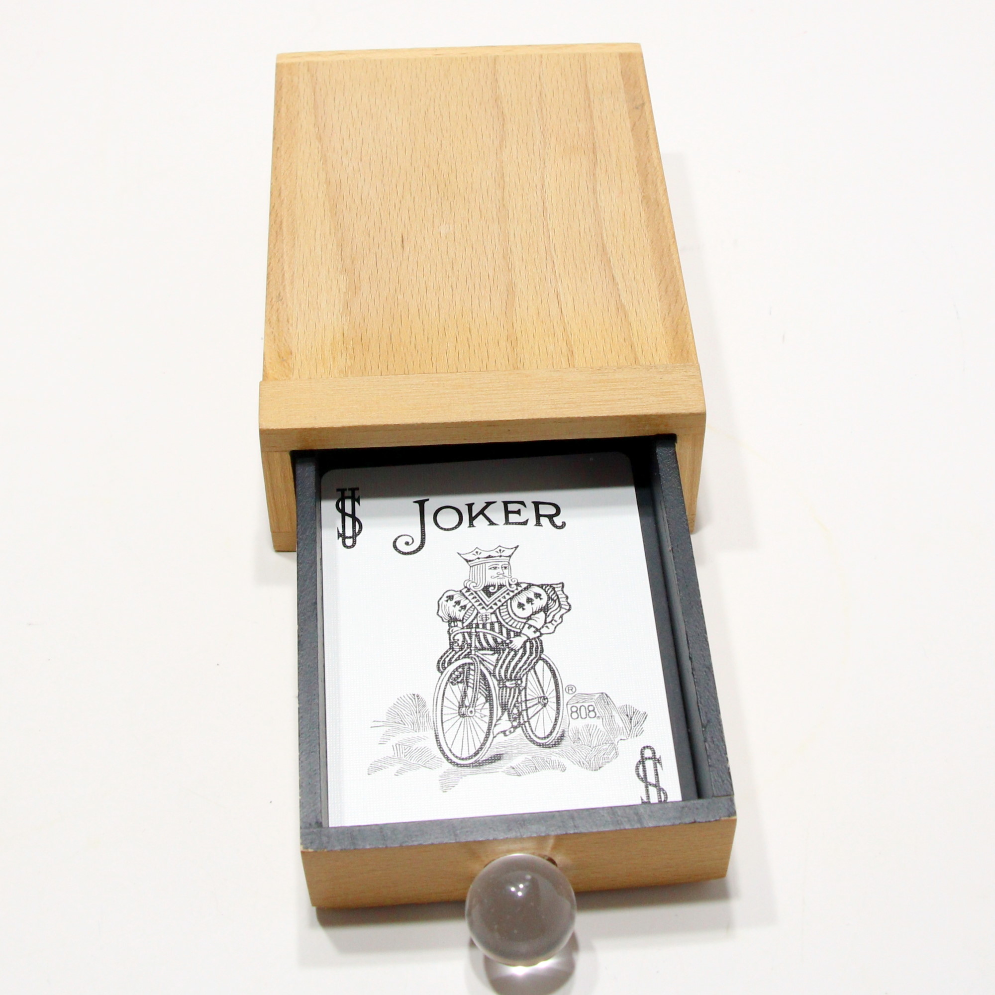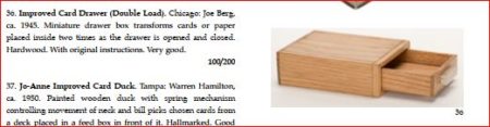 This is beautiful remake of Joe Berg’s wonderful Improved Card Drawer c. 1945 by avid magician and talented woodworker Marvin Cull c. 1998. Marvin did a wonderful job and although I have not seen the original Berg boxes in person, from photos it appears that this is as good if not better than the originals.