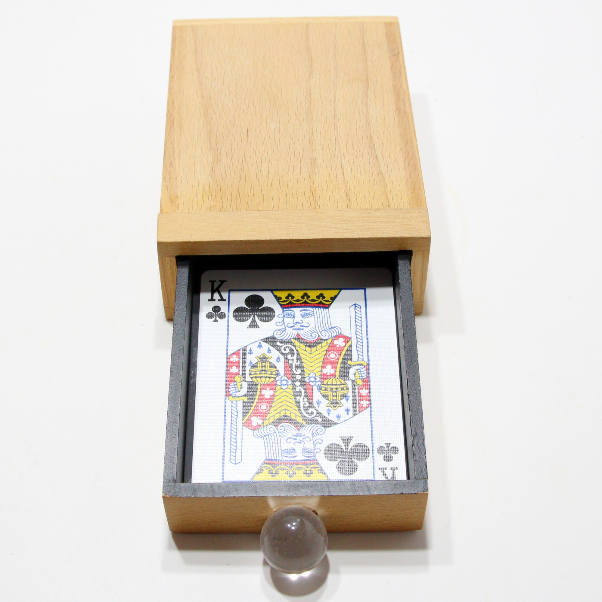 The Improved Card Drawer is a card drawer box that allows for two changes and the drawer can be removed 100% and can be examined. Even the outer cover can be shown quite cleanly and handled by the spectator, though I would not recommend a thorough examination. What also works well about the design is the cleanness of the release mechanism. There are no levers or slides to change. Just push the drawer in all the way and the change happens, so the moment it happens is up to you with nothing added or taken away. You’ll love this box for sure.
