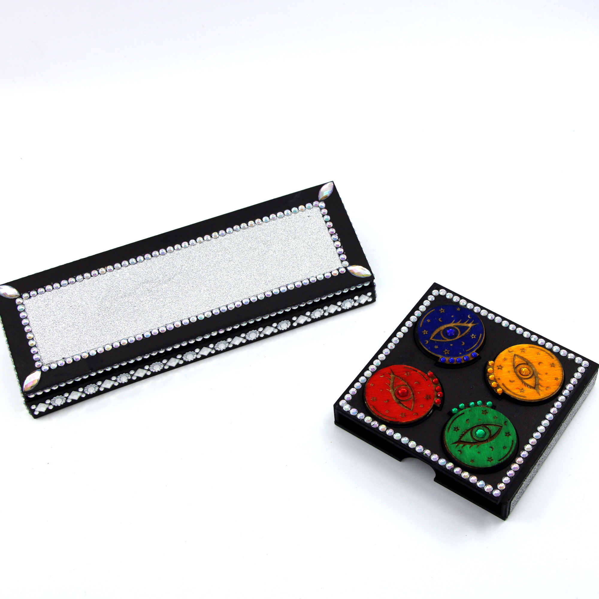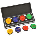 Effect: A small covered stand is shown holding four different colored chips.  The performer turns away and the spectator places the chips in any order – they can change their mind and even slip one in their pocket if they want.  When the performer turns around he can instantly pull out four duplicate chips from a small box and lay them out on the table – each one matches every single time.