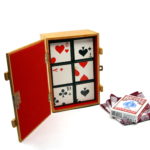 This is a wonderful double effect from Vienna Magic and the inventive mind of Wolfgang Grosskopf. It has been tricky to pinpoint an exact date when Wolfgang invented the idea. I was able to track down references to Kartenwürfel as early as 1957, and Wolfgang was most active from 1970-2000. My best guess is Wolfgang had the idea c. 1980, and it was later built by Vienna Magic and released by Eckhard Boettcher c. 2002. This version is with Jumbo cards and an elegant wooden packing case to store them. (If you have more accurate dates please contact me.)