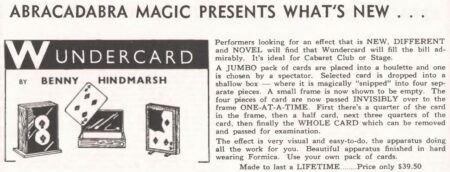 Thanks to an online contact it is likely that this particular version was made by UK builder, inventor, and magician: Benny Hindmarsh, who specialized in a Formica Laminate finish. Hindmarsh sold as a dealer at local UK conventions in the late 1960’s and early 1970’s. Hindmarsh worked closely with Eddie Burke of Magictrix, Stoke-on-Trent who sold a lot of his props in the 1970’s. Later in the late 1980’s and early 90’s Hindmarsh made twenty card ducks for Castle Magic. These were unusual in that the duck was much taller than usual and the box to hold the cards popped up via a spring.