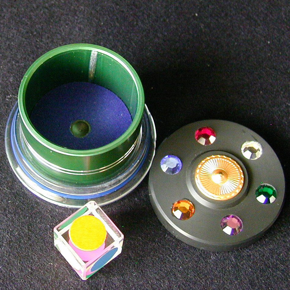 Effect: A beautifully jeweled box is shown with six different colored stones circling the lid. You tell the spectator that there is a colored die inside and that no matter which stone they select it will match your prediction. With that, he names a color you take off the lid and the die has the same color up as the color he selected.
