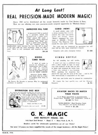This is a great fooler that can be set and cleared in front of the spectator, and it wasn’t until 1964 when Tenyo started selling their version which is probably what most people will remember.