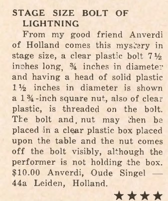 Norway’s Finn Jon (Finn Hauger) invented this clever idea c. 1964 and about a year later Anverdi created a beautiful stage size version in plexiglass and created some new routines with the device too.