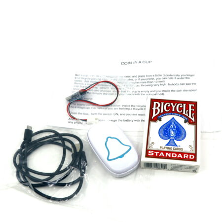 It is only sound. The sound comes from the receiver inside the bicycle playing card box As a magician it is natural you are holding a Bicycle Deck.