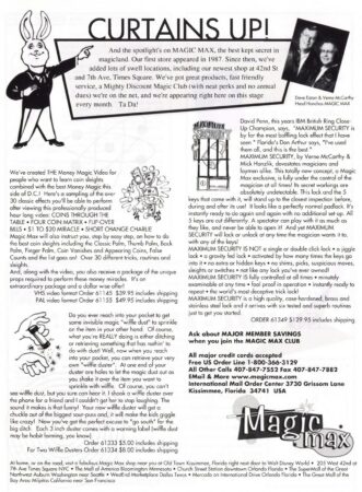 Effect: David Penn, this years IBM British Ring Close-Up Champion, says, “MAXIMUM SECURITY is by far the most baffling lock effect that I have seen.” Florida’s Don Arthur says, “I’ve used them all, and this is the best.”