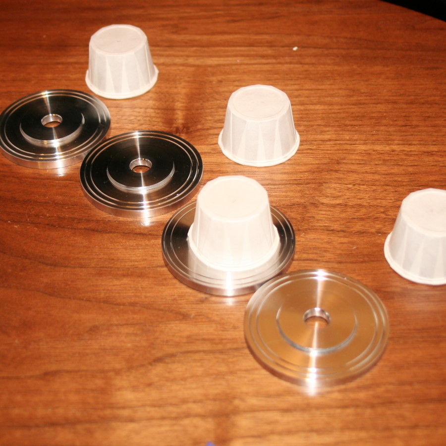 Effect: The four discs are laid out and covered with cups. The magician mixes the discs around while the spectator is turned around. Then the magician turns around and allows the spectator to mix up the discs also. With the discs now mixed up, the magician asks the spectator to select a disc. That disc is pulled towards the spectator and left alone. One by One, the magician smashes the cups on the disc while fearing for smashing the disc with the bullet. The last one set aside by the spectator is revealed to be the disc with the copper bullet.