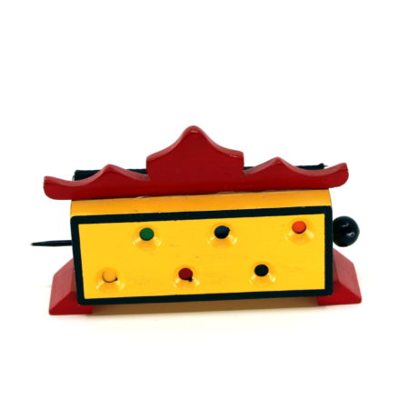 Effect: A miniature pagoda-style cabinet of first-class design and finish, as are all our props, and six coloured blocks are shown. TWO BLOCKS ARE FREELY SELECTED, then all six are returned to the cabinet and secured by a metal spike which is thrust through the cabinet and the centre of the blocks.