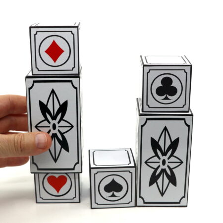 Beautifully made in wood with an almost self working mechanism with nothing added or taken away. The hearts and spades blocks keep changing position.