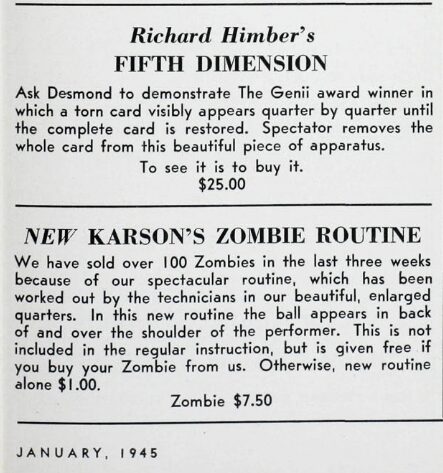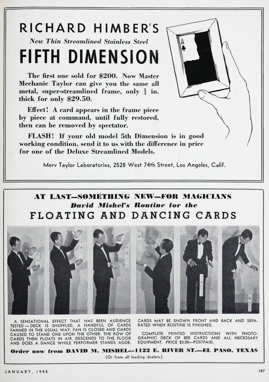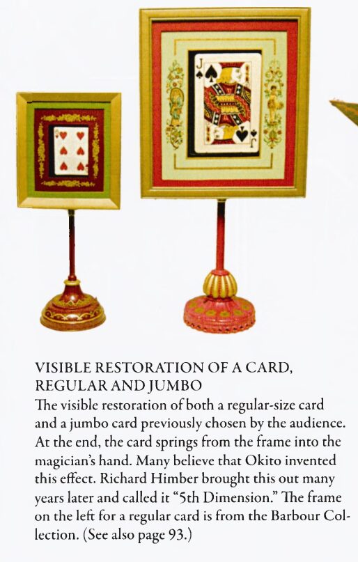 Okito’s version was a direct descendant to Richard Himber’s Fifth Dimension, whether Richard Himber admitted it at the time or not. Himber’s initial version used a larger wooden frame, 5.5″ x 7″ x 1″, and the first copy reportedly sold for $200 in 1944 (which would have been approximately $3,681 in 2025), but most of them after that sold for around $25.
