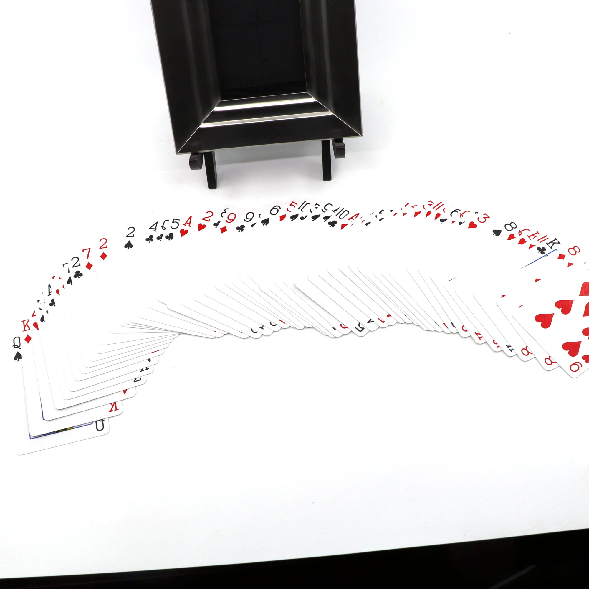This is a lovely piece of craftsmanship from Merv Taylor. It is easy to set and works perfectly. The only slight inconvenience is that it was built for bridge sized cards not poker. If I had a choice of this one or the CW one, I’d choose this one. In this case smaller is certainly better 🙂