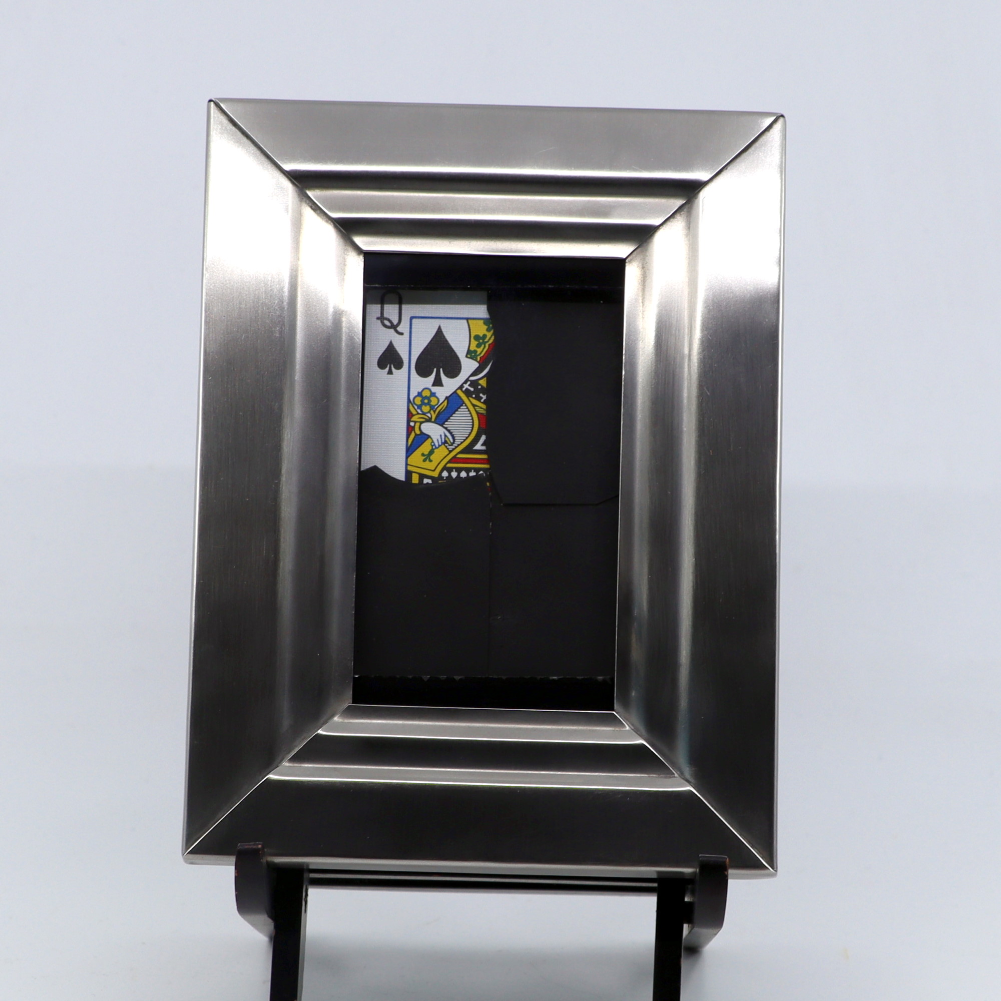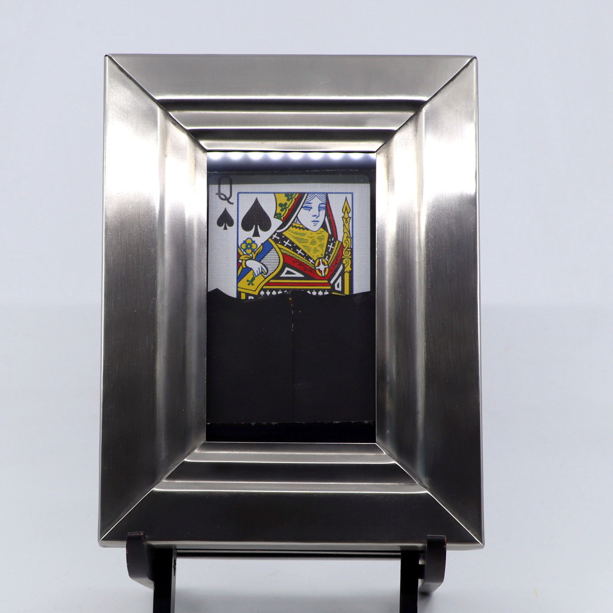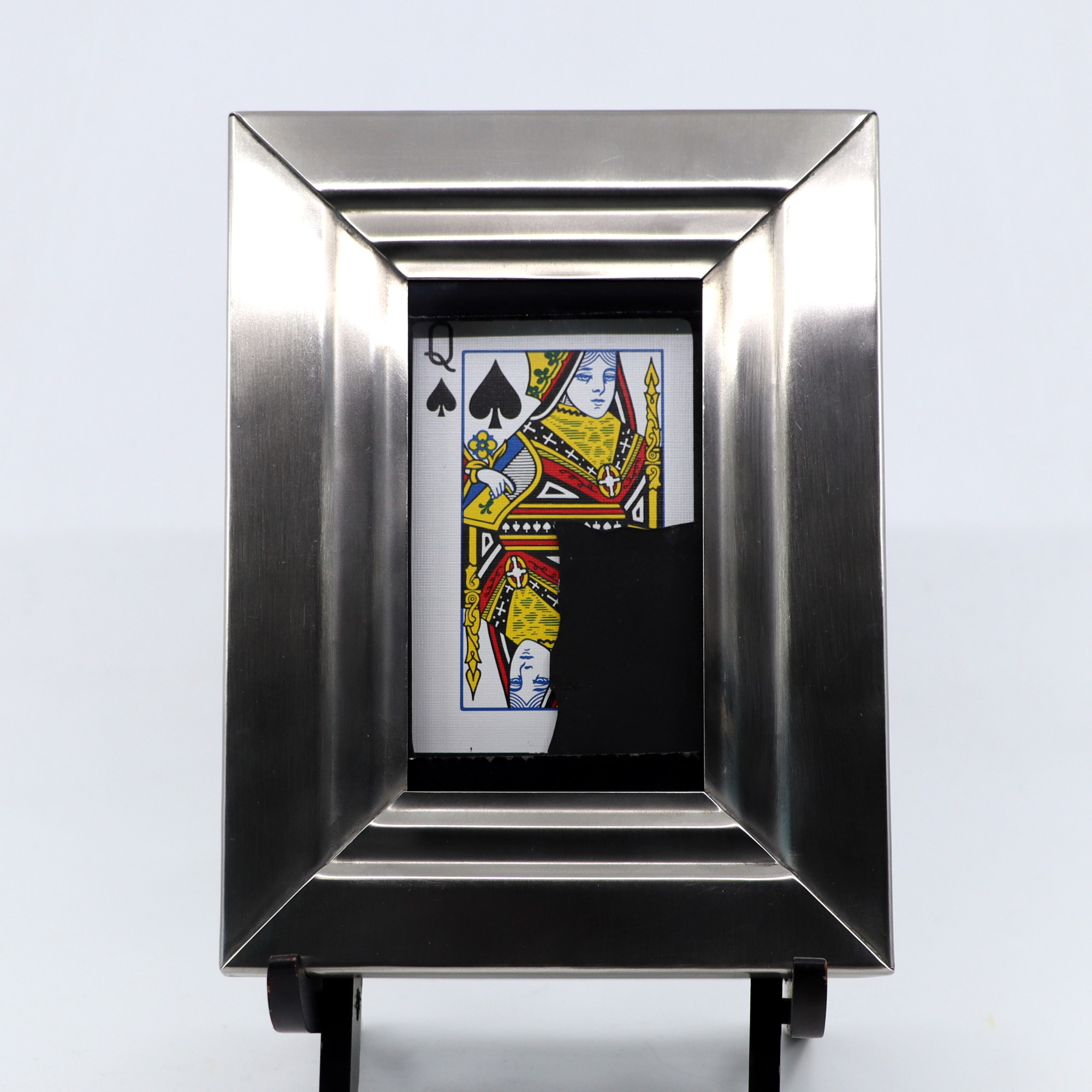 About a year after the original run Himber had Merv Taylor create a new streamlined thin steel version and it was quite stunning and was a lot smaller, particularly the thickness: 5″ x 6.5″ x 3/8″. This streamlined version really is a beauty and is significantly smaller than even Collectors’ Workshop’s Vienna Card Frame that was released over 40 years later (see the final photos at the end on this page).