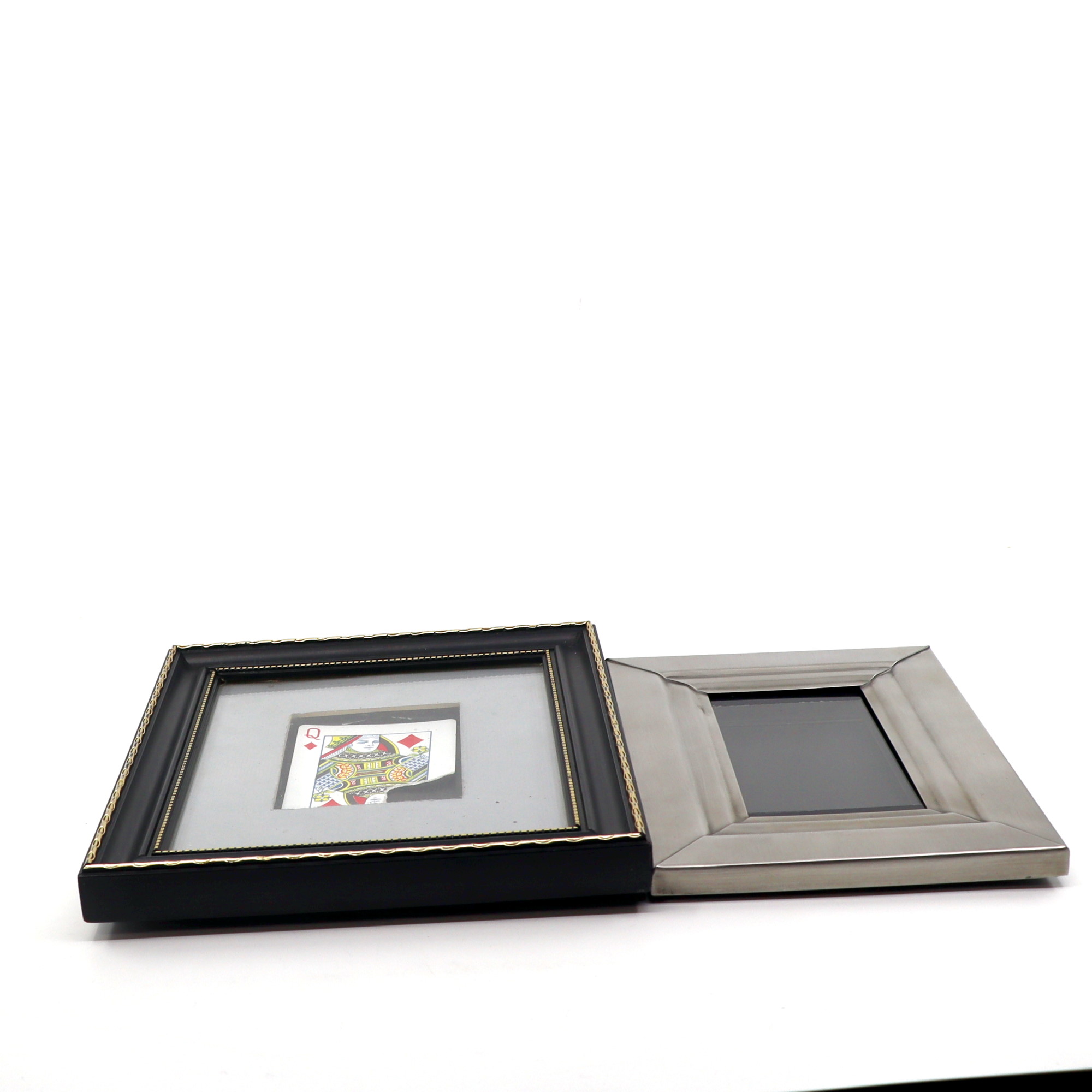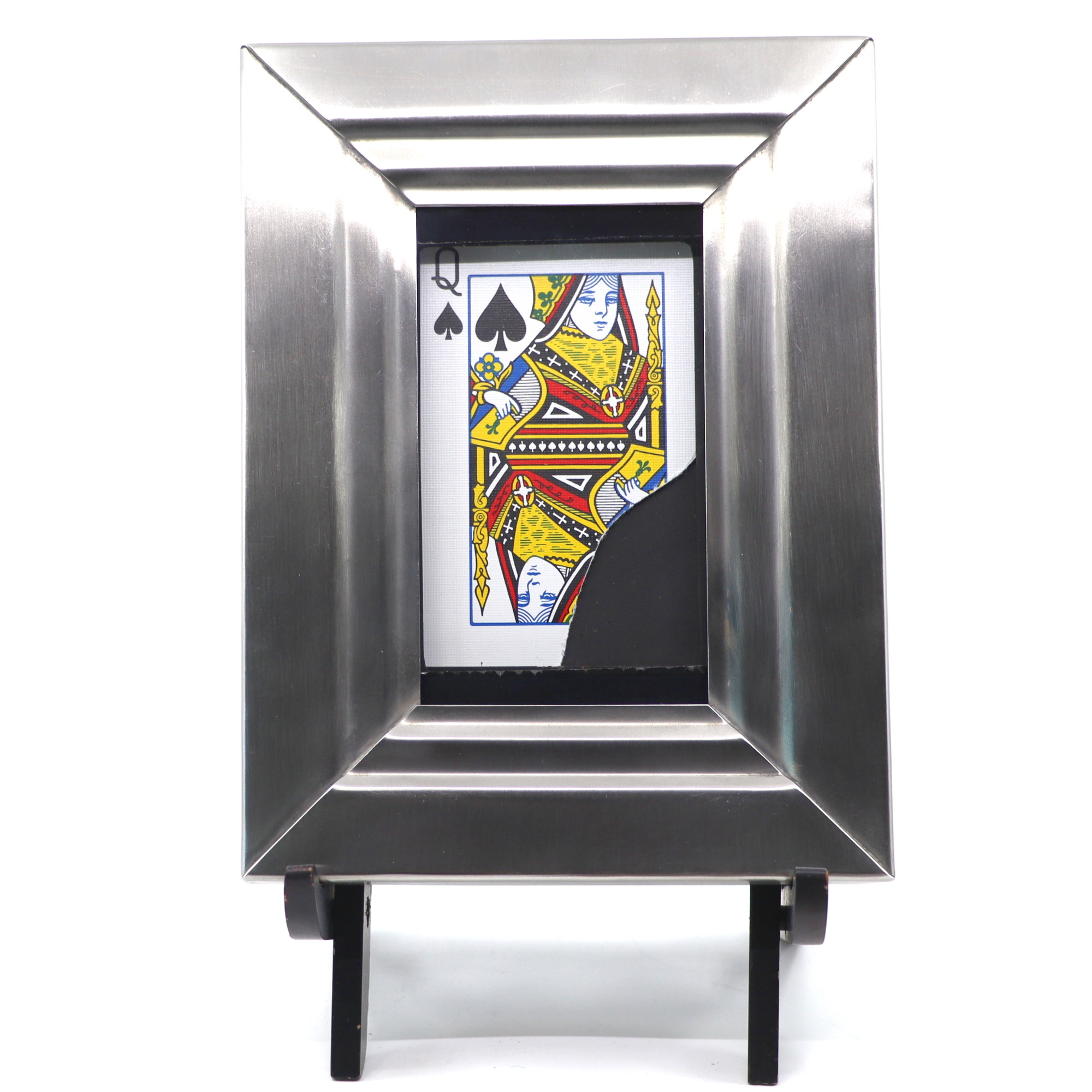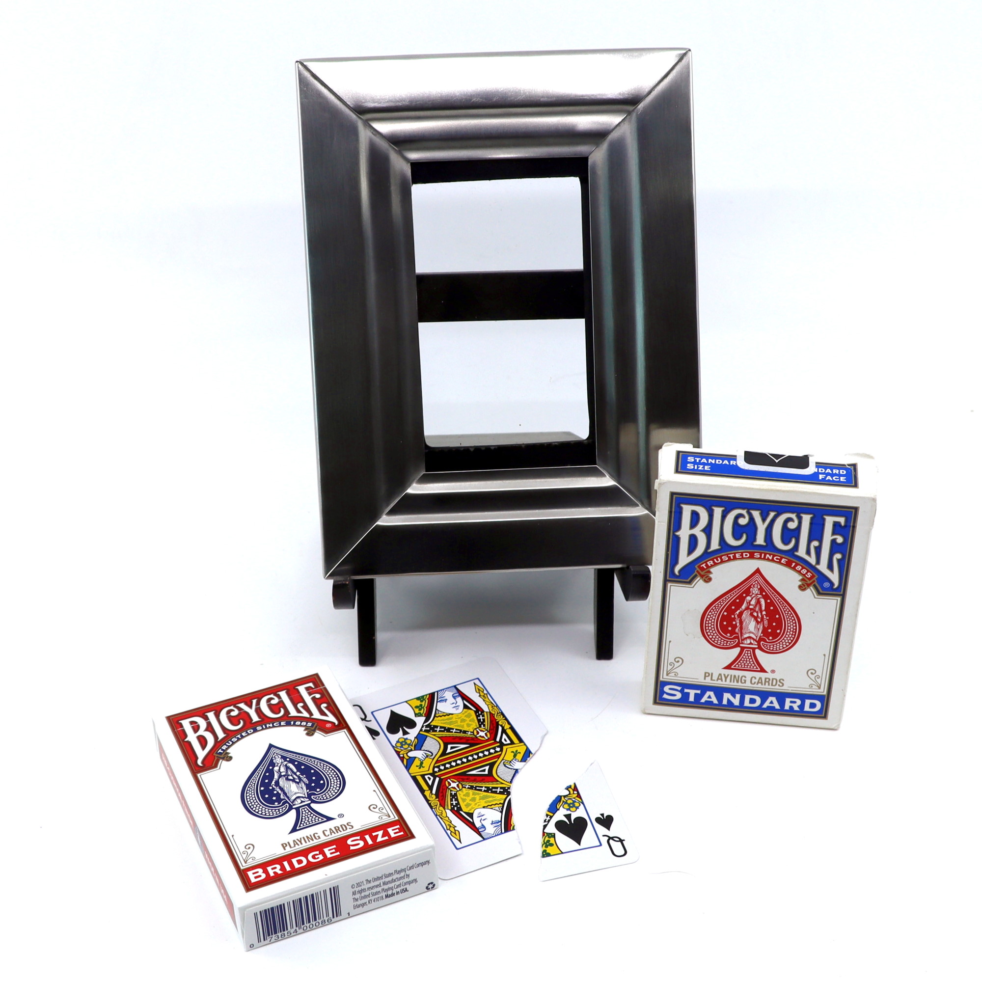 About a year after the original run Himber had Merv Taylor create a new streamlined thin steel version and it was quite stunning and was a lot smaller, particularly the thickness: 5″ x 6.5″ x 3/8″. This streamlined version really is a beauty and is significantly smaller than even Collectors’ Workshop’s Vienna Card Frame that was released over 40 years later (see the final photos at the end on this page).