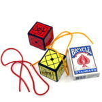 Effect: You show two pierced decorated Chinese cubes one red and one yellow with two matching colored strings. The cubes are seen to move freely on both strings.