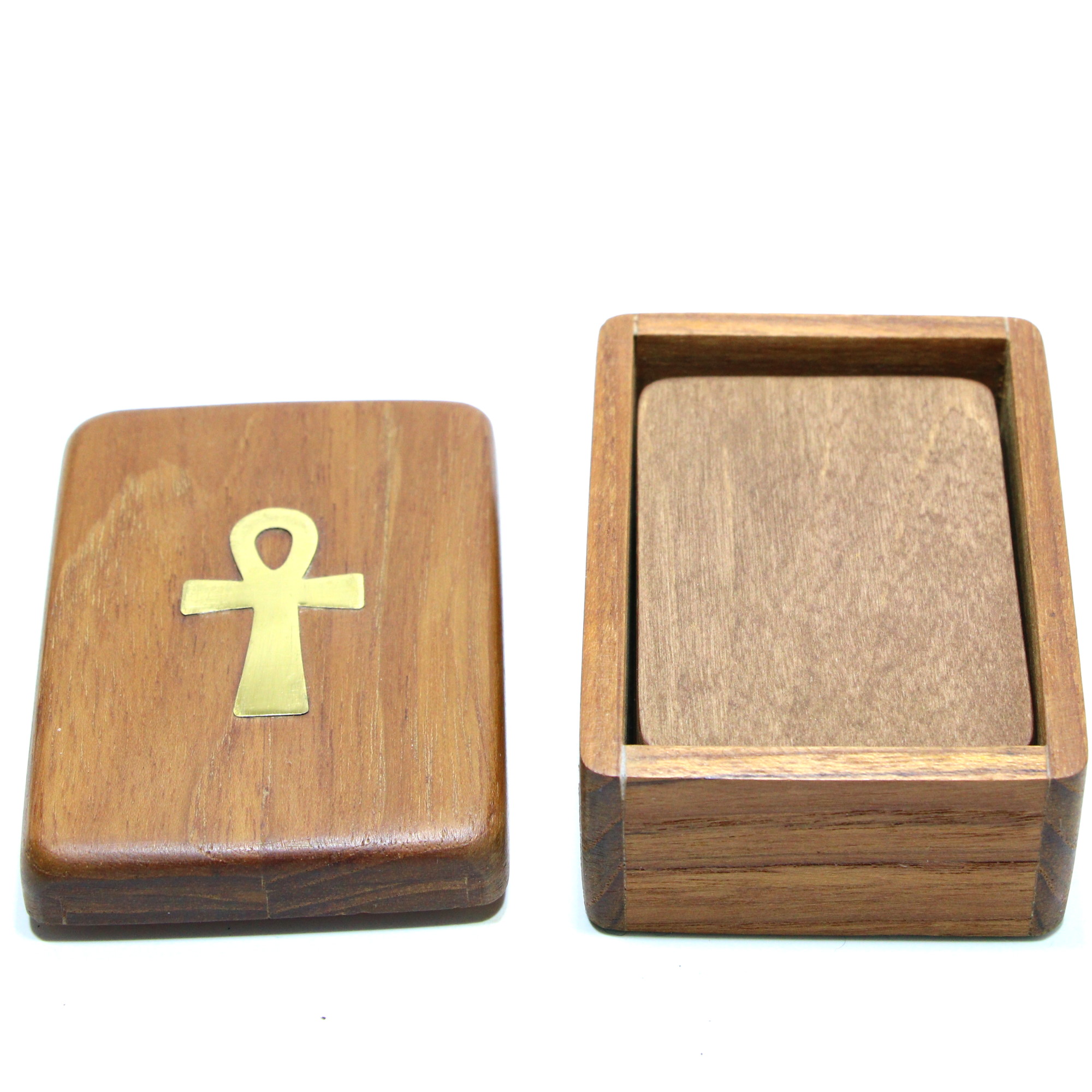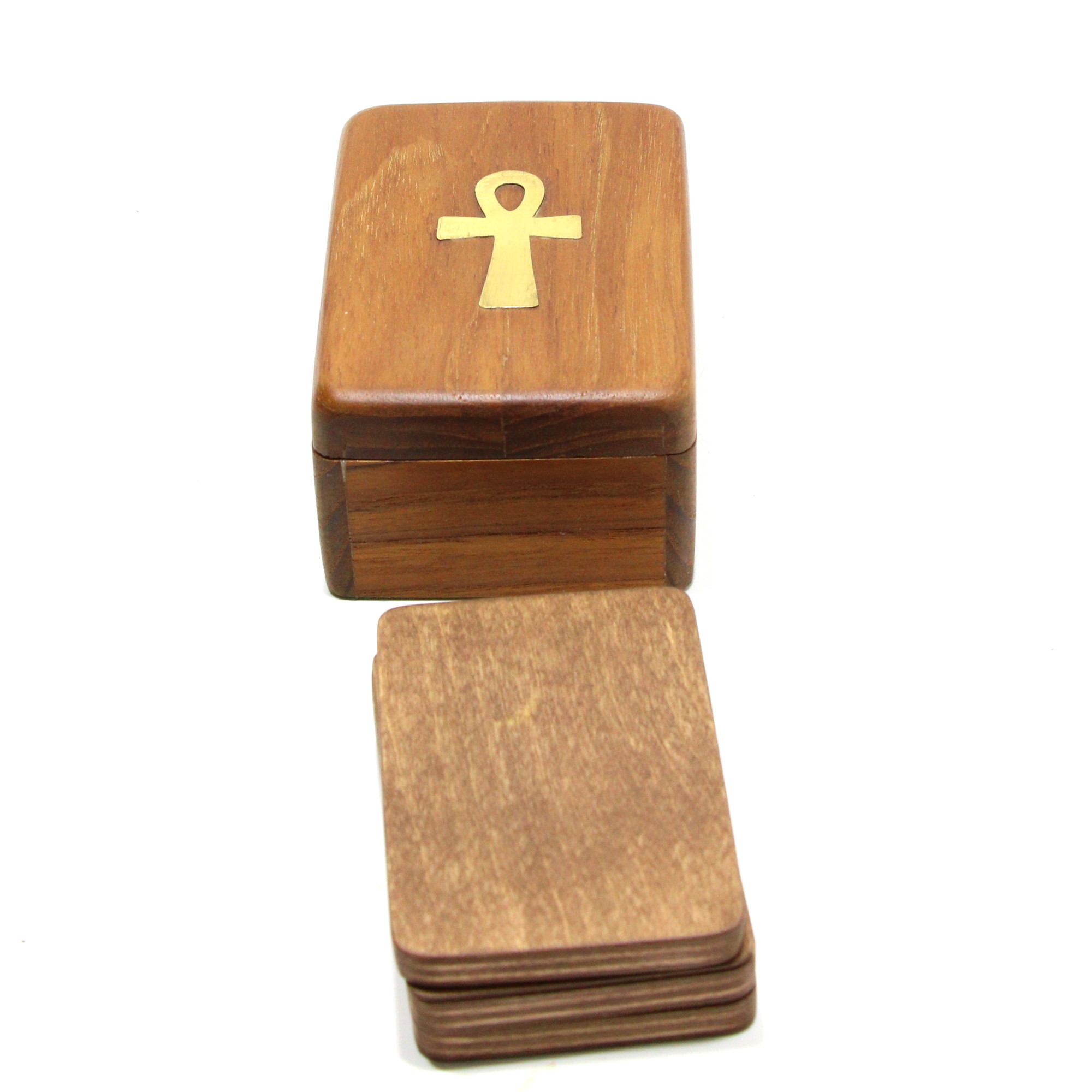 Effect: Three solid wooden tablets (each approx. 0.6 cm thick) are tipped out of a box and freely displayed by the performer. Two of the tablets are plain on both sides, but the third bears the symbol of the sacred Egyptian scarab. The empty box is then given to a spectator from the audience and once again, the performer draws attention to the scarab on the tablet. BUT SUDDENLY, ON SEPARATING THE TABLETS, IT IS SEEN THAT THE SCARAB HAS DISAPPEARED, LEAVING AN OBLONG HOLE RIGHT THROUGH THE MIDDLE OF THE TABLET. The spectator, on being invited to open the box, finds that the mixing oblong piece of wood with the scarab symbol on it has returned to the box.