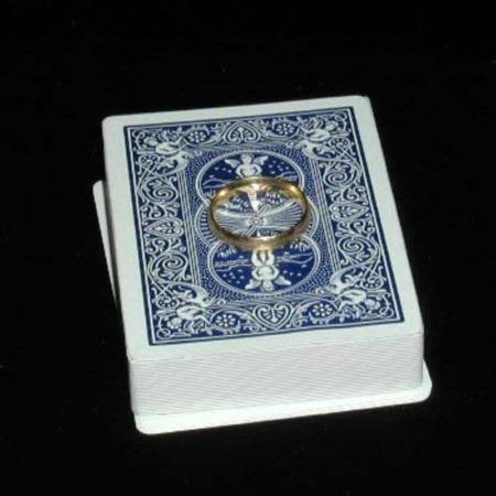 Effect: A deck of cards is removed from its box and a ring placed on top of the deck. The cards are covered with a silk. When the silk is removed, the ring has vanished…only to reappear somewhere else.