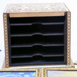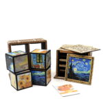Effect: Four beautiful miniature Van Gogh paintings are shown and stored in a special cabinet to keep them safe. Four cubes with partial sections of the paintings printed on the sides are also shown that fit into an open frame. The spectator is given a completely free choice as to which cube is slotted in which section of the frame – this is free and above board. Once all four cubes are placed in the frame they are covered with a hanky.