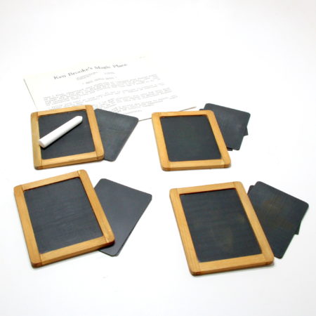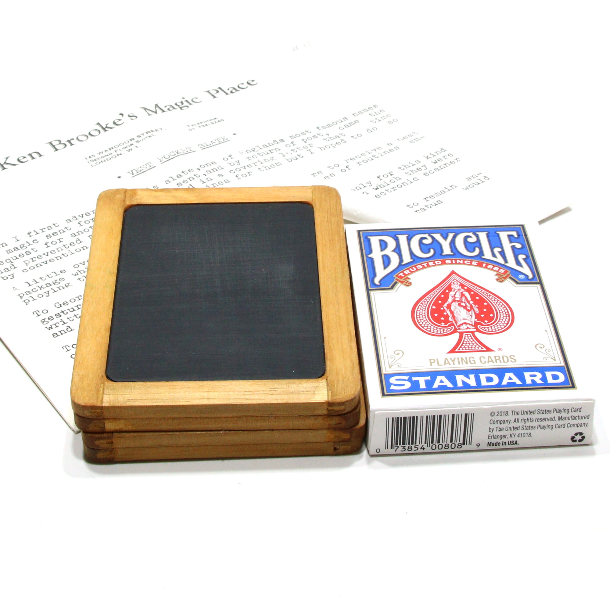 Effect: 4 1/2″ x 3″ and only 3/ 16″ thick. Each has 3 different types of flap, one with playing card back, for ‘under the nose’ disposal. All flaps fit perfectly. Hand made! Individually made! Looks like and is a Perfect Miniature Slate, not a magical monstrosity!