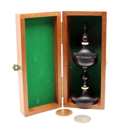 With both Colin and Paul now retired finding this sort of impeccable wood turning is almost impossible for any price.  The vase works perfectly and Colin and Paul thought of everything – there is even room enough to secrete a coin in the base when the vase stands flat on the table which adds more opportunities for magic and mystery.  When you hold a magnificent item like this in your hands you begin to understand why so many collectors and magicians are drawn to wood turnings – talk about magic in the palm of your hands.  Just breathtaking and even Floyd Thayer would be proud of this piece 🙂