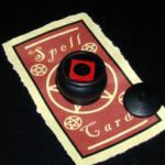 “A spell card with the proper symbol in the center to get the spell moving. Here, Ill demonstrate what I mean. I am going to turn my back and I want you to take up one of the dice and place it in the cauldron and put on the lid. Then, take up the other one and place it behind your back. Alright, go to it.”