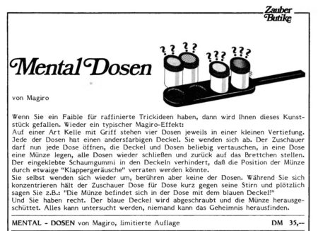This was invented by Magiro and released by Eckhard Boettcher as Mental Dosen c. 1985.