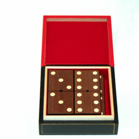 The Dutchman’s Dominoes, has a very striking red and black box with gold trim and lined with red felt to protect the solid walnut dominoes within.