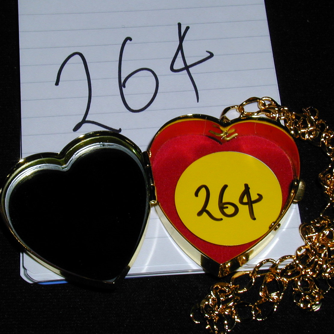 Effect 3: In FULL view is a heart shaped locket on a chain hanging down. In the locket is a written prediction. Ask three random audience members to call out a single digit number, giving you a three digit number. Write this 3 digit number down in the note pad, have another audience member hold the pad.