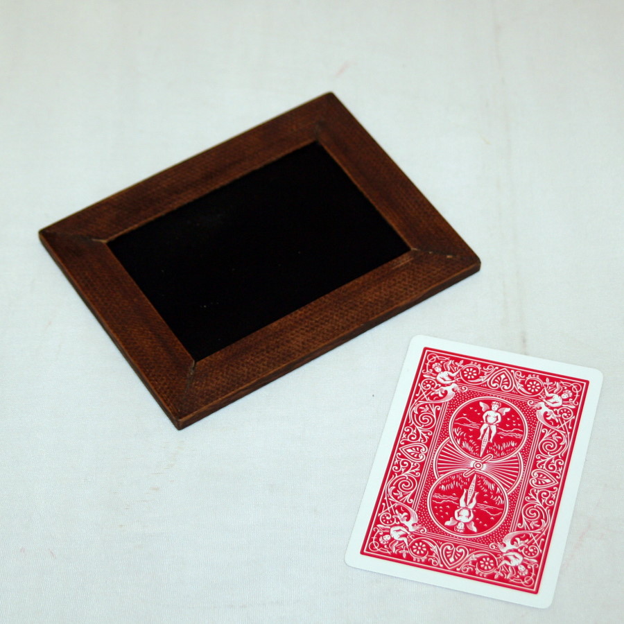 This is a mentalist’s dream. It is a new idea, and it is a welcome one. A small 4 1/4″ x 3 1/4″ with a dark, carved stained frame is removed from an envelope. Both sides are shown to be completely blank, just black slate faces. Spectator selects a playing card when the slate is again shown the chosen card is clearly named upon the slate in larger bold initials such as A-H, 4-D, Ks or whatever.