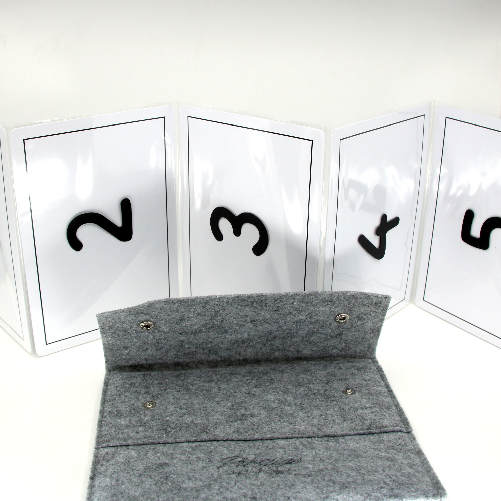 If desired you can also perform the effect with all the number off of the boards. You can use either the supplied plastic holders (which gives you an additional effect with the numbers) or any holder at all such as notebook holder. Or if you wish you can simply put the cards next to any object on your table. You can make any single card change, whether they are in the foldable clear plastic holder or on the table next to an object!