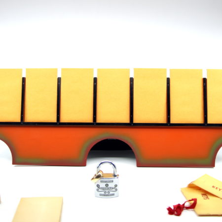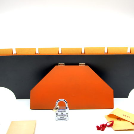 The Improved version was an add on to the original effect with a custom made stand and was released c. 1938. These stands are much harder to find and this one is in like new condition. The effect is the same method but with a stand to lay out the envelopes so you can do everything hands free – the performer never needs to touch the keys or the envelopes once they have been handed to the spectators.