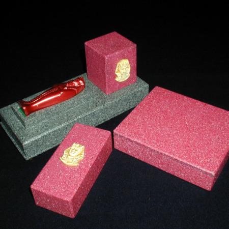 Effect: The lid of a decorative box is raised to reveal four different colored wooden mummies … gold, red, green and blue. Another display stand is shown with two covers which are removed to reveal a resting place for one of the mummies, and a mysterious looking clear crystal. While the performer is out of the room or with back turned, any one of the four mummies is placed into the “tomb” and covered. The crystal is also covered. The performer returns and asks the spectator to uncover the crystal and concentrate on the color of the mummy they selected. For a short period nothing happens, and then after about fifteen seconds the crystal slowly starts to glow the color of the chosen mummy! It shines brightly revealing the hidden selection, until slowly fading back to clear.