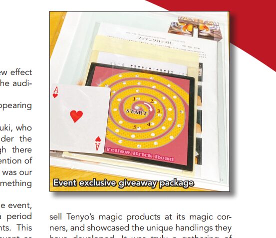It is based on The Yellow Brick Road performed by Toru Suzuki at the Tenyo Magic Fan Meeting held in Yokohama (about 30 minutes from Tokyo). This effect was based on the “Fortune Telling Card” created in 1998 and released in 1999 as part of the Tenyo Plus One campaign.
