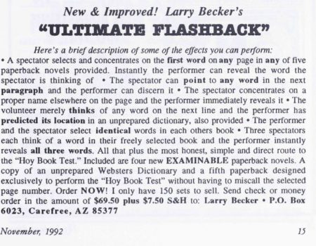 And to top it off, you receive comprehensive instructions as only Larry Becker can draft them, right down to the very last detail. Best of all, “Ultimate Flashback” is so easy to perform you can literally concentrate 100% of your efforts on the presentation. Without question, there’s no finer word and book test anywhere.