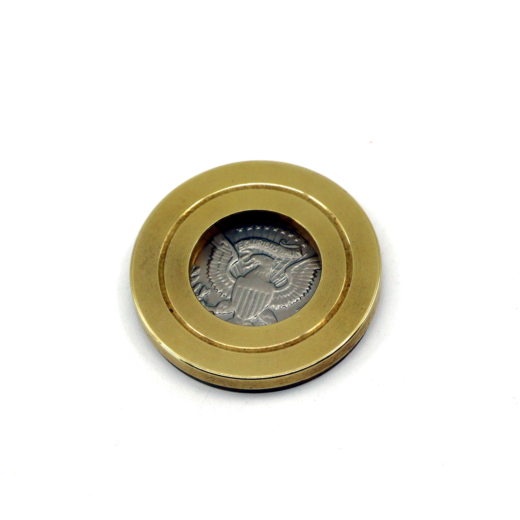 Effect: A silver dollar is covered with a shining brass washer and immediately an American cent falls into performer’s palm, the dollar having vanished as so many dollars are wont to do. You can patter about inflation, deflation or whatever. It comes complete with a “bang ring” to get it ready for the next performance. The washer can be shown on both sides and who would suspect the little penny!