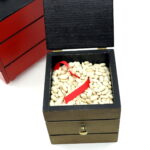 The improved Arturo version is easier to set and the effect is more impressive because the signed coin vanishes and appears inside a third box that is sealed inside a second box which is surrounded by beans, as opposed to just one box as in the original effect. There have been a number of versions built by various builders including very pretty ones by Charles Stillwell (in the early 1960’s), Mel Babcock and Louis Gaynor. However, one of the features of these original Arturo made boxes is that the large outer red box dismantles further which makes it easier to set-up.